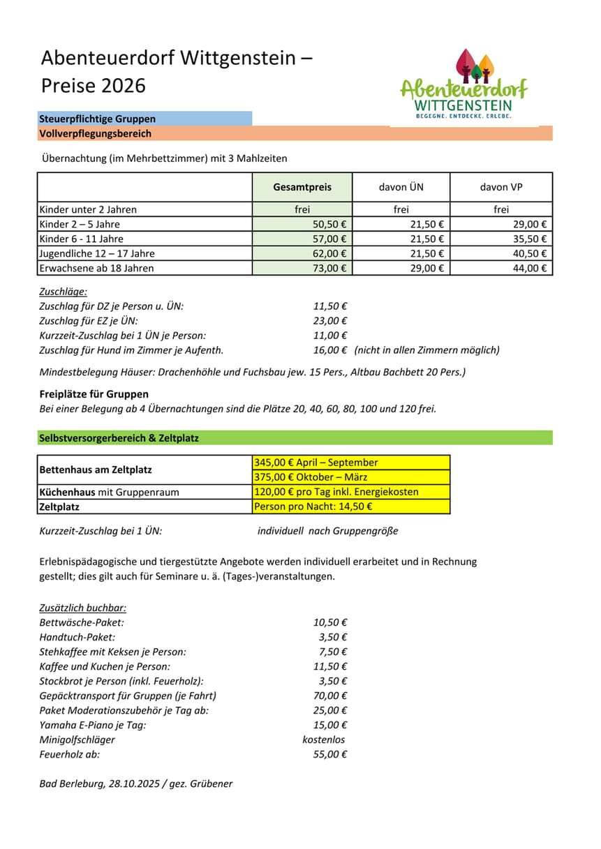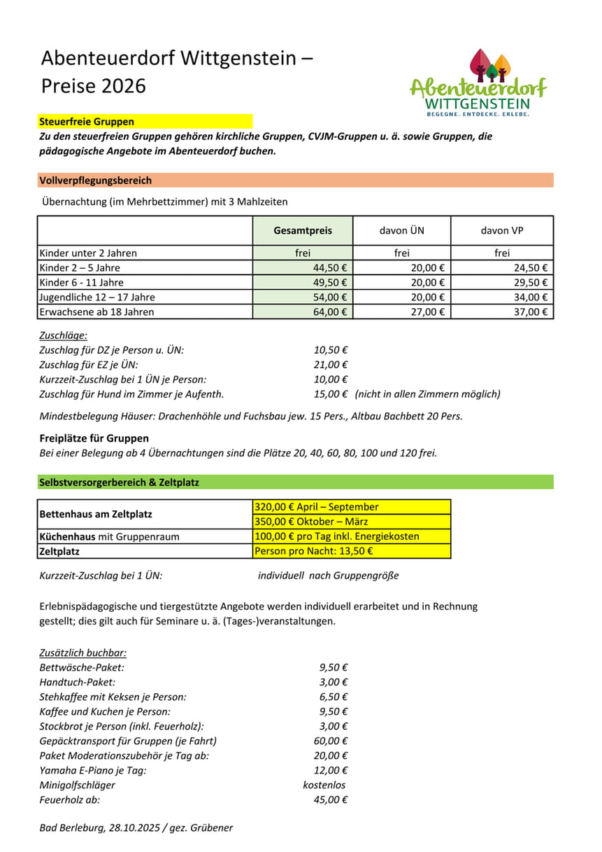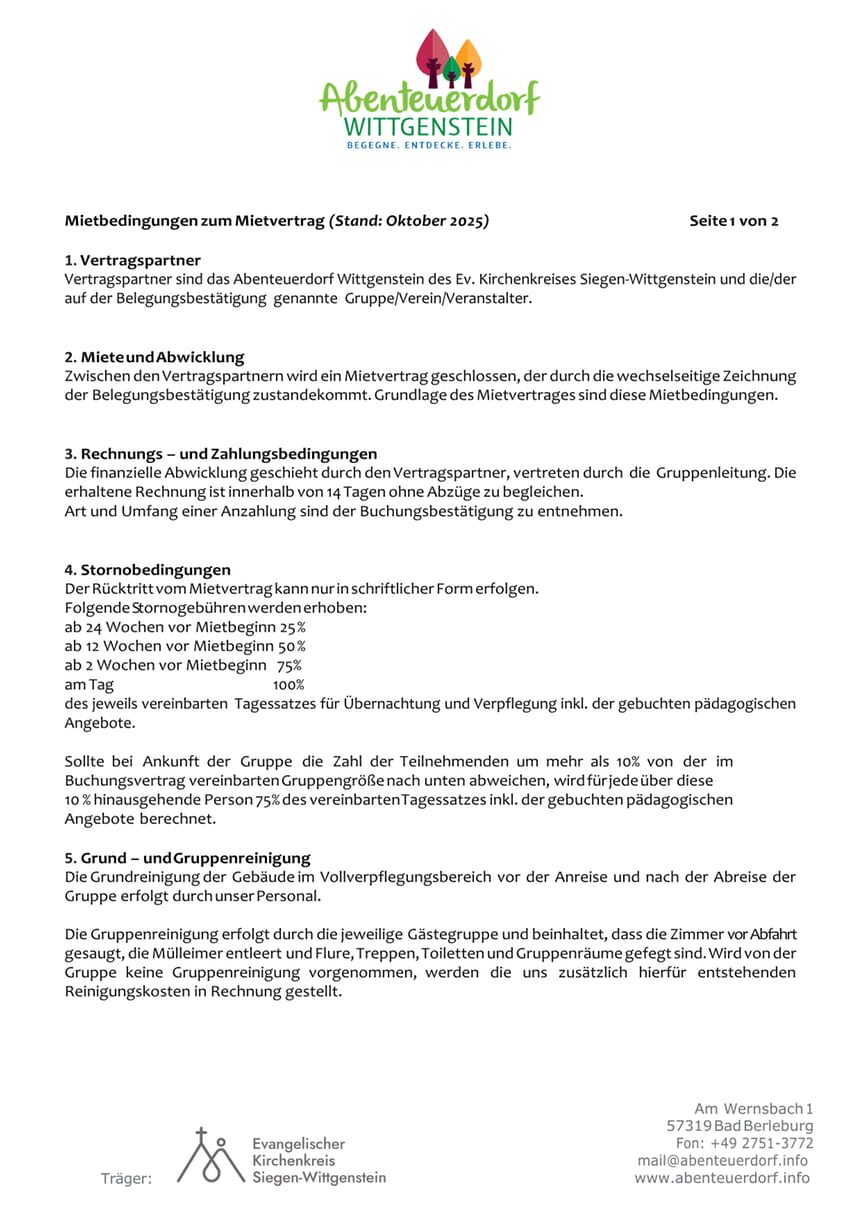 Download Preisliste und Mietbedingungen